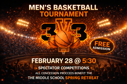 Spectators welcome to enjoy an evening of basketball and fellowship and spectator competitions. All concessions stands proceeds will benefit the Middle School Retreat